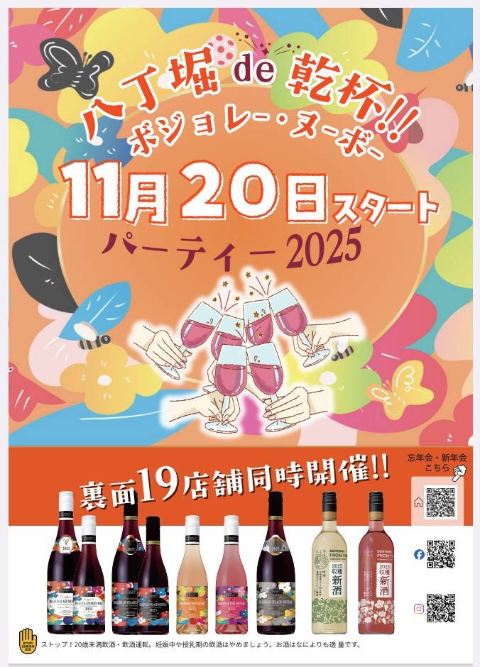 あのフランスボジョレー地方の名門と呼ばれる『ジョルジュ・デュ・ブュッフ』によるオレンジヌーボーを中心に、八丁堀はしご酒の19店舗が盛り上がります。